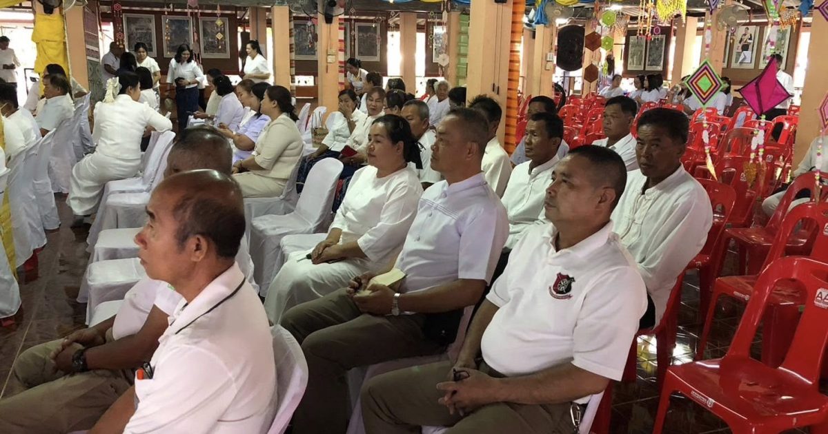 พ.ต.ต.ชาติชาย จุลณีย์ สวป.(ชส)พร้อมเจ้าหน้าที่ตำรวจ สภ.พังโคน ร่วมฟังสวดเจริญพุทธมนต์ เนื่องในปีมหามงคล 72 พรรษา พระเจ้าอยู่หัว รัชกาลที่ 10 ร่วมกับอำเภอพังโคนและหัวหน้าส่วนราชการทุกภาคส่วน ที่วัดป่าประชาพินิจ บ.ดง ม.2 ต.ม่วงไข่ อ.พังโคน