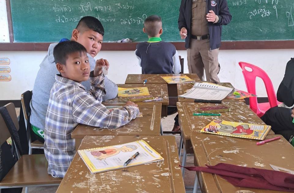 ด.ต.สายชน แก้วทอง ผบ.หมู่(ป.)ฯ ออกทำการสอนโครงการ D.A.R.E.(ประเทศไทย) ที่รร.บ้านต้นผึ้ง หมู่12 ต.ต้นผึ้ง อ.พังโคน จ.สกลนคร แก่เด็กนักเรียนชั้นป.5 จำนวน 7 คน