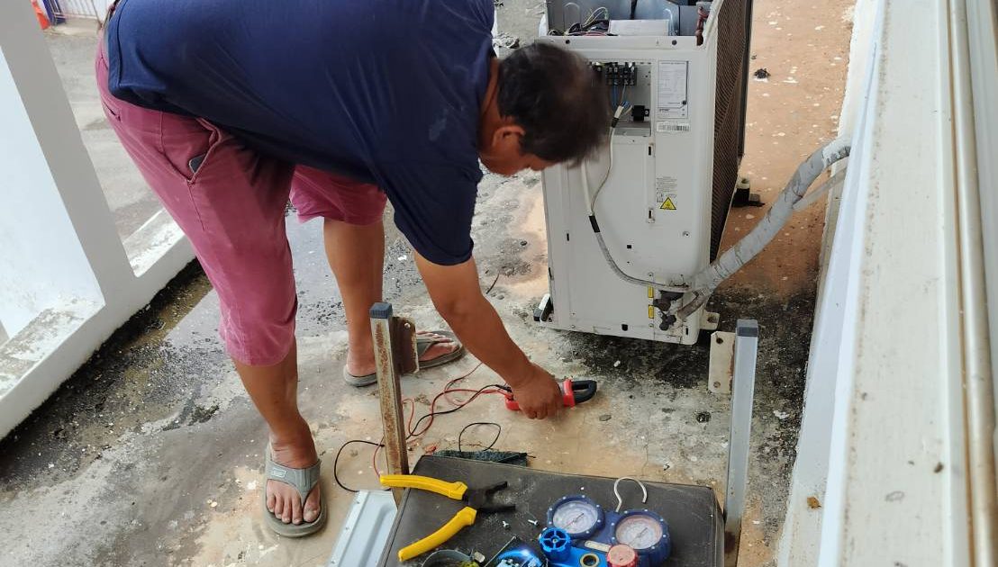 งานอำนวยการ ได้ตรวจสอบแอร์ภายในสำนักงาน พบว่ามีเครื่องที่ไม่สามารถใช้งานได้ จึงได้ติดต่อช่างแอร์มาซ่อมเพื่อใช้งานต่อไป