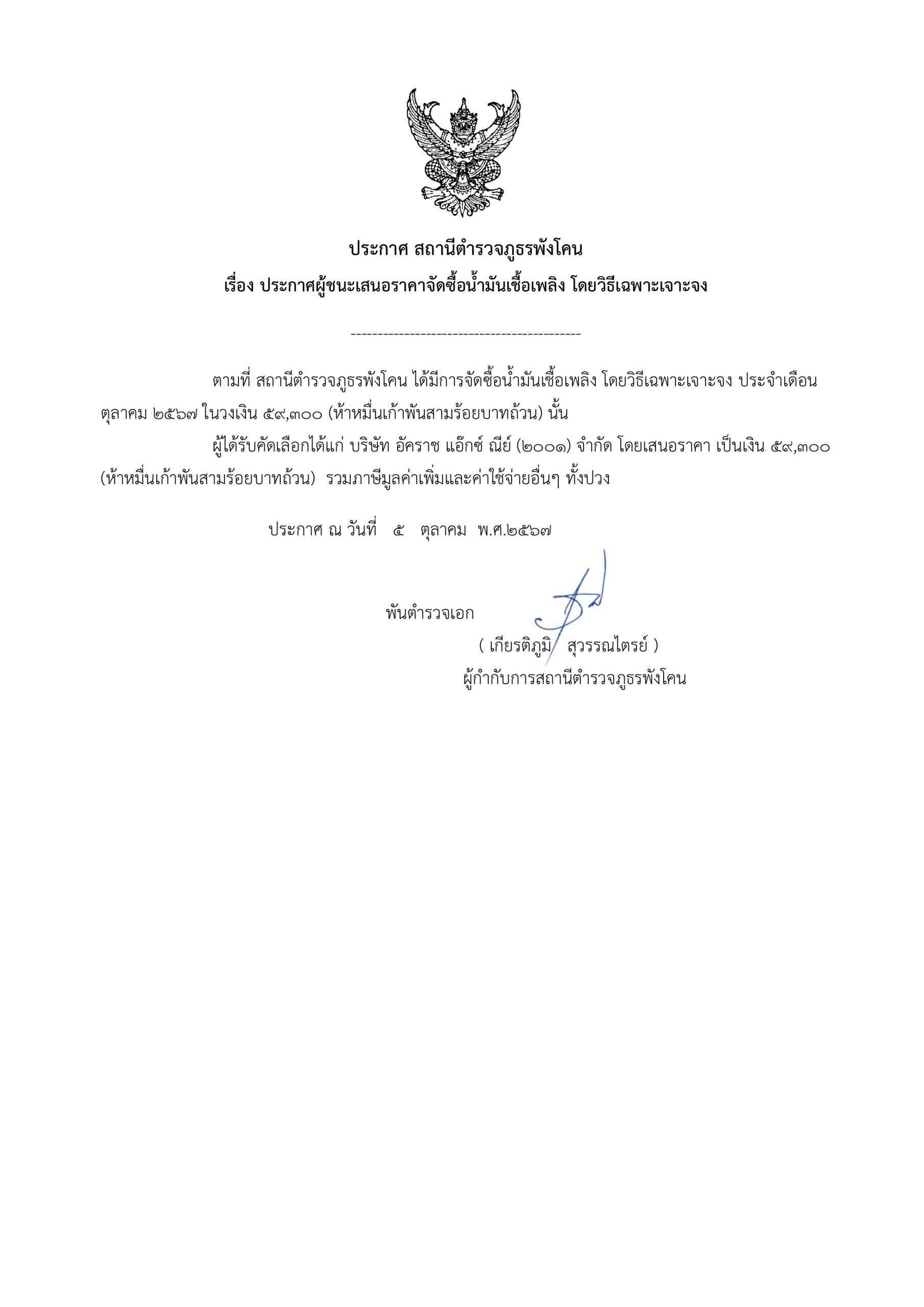 ประกาศจัดซื้อจัดจ้าง เดือนตุลาคม 2567