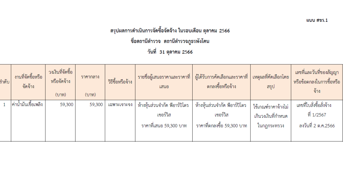 สรุปรายการจัดซื้อจัดจ้างประจำเดือนตุลาคม 2566
