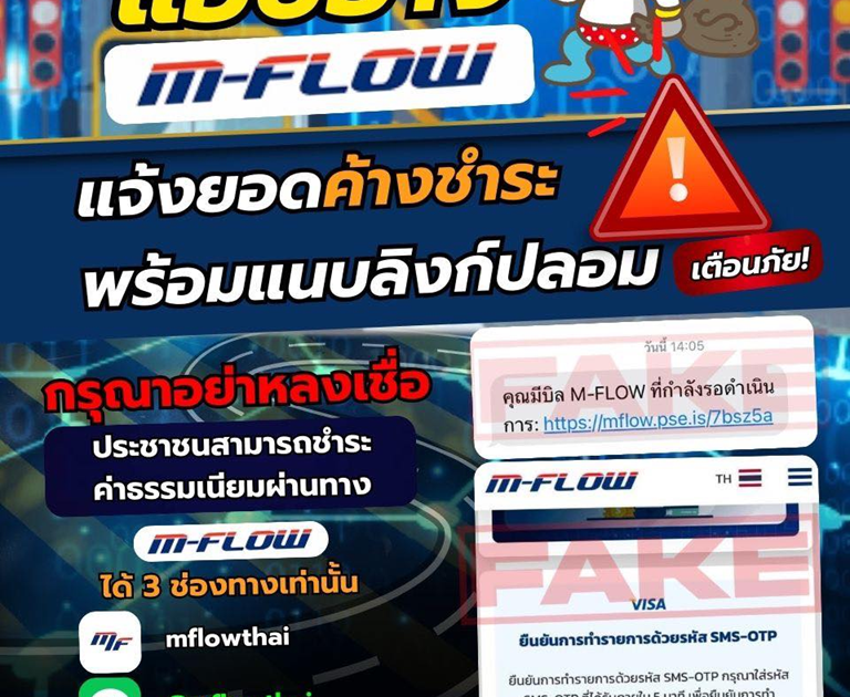 เตือนภัย กลับมาอีกแล้ว!! มิจฉาชีพแอบอ้าง M-Flow ปลอม