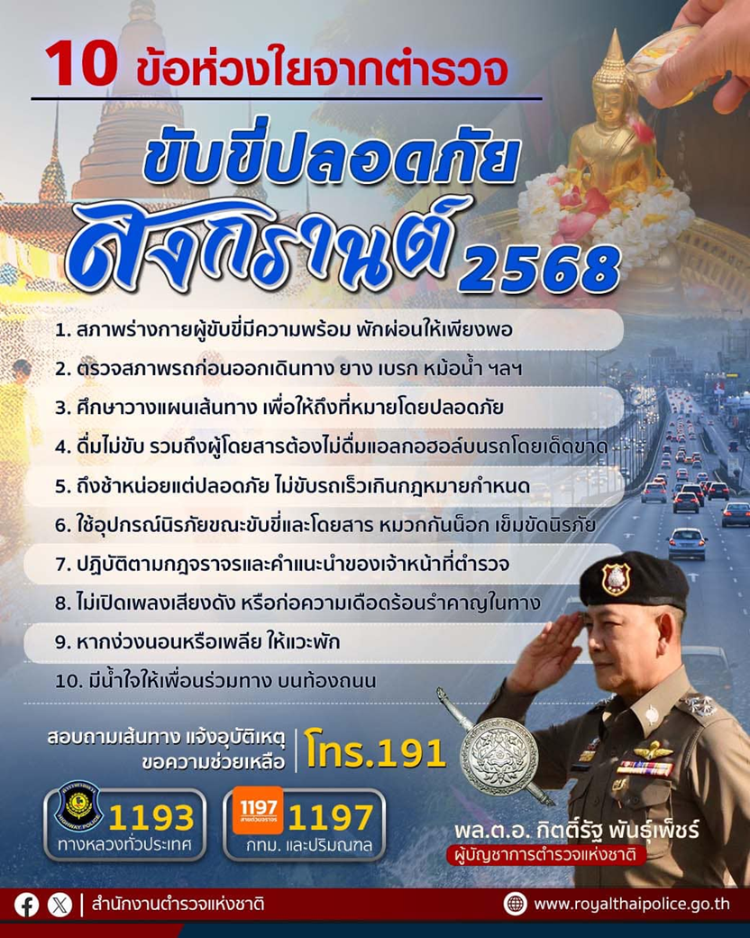 10 ข้อห่วงใยจาก ( ใจ ) ตำรวจ สงกรานต์ 2568 ขับขี่ปลอดภัยเดินทางถึงที่หมายไปหาคนที่ท่านรัก