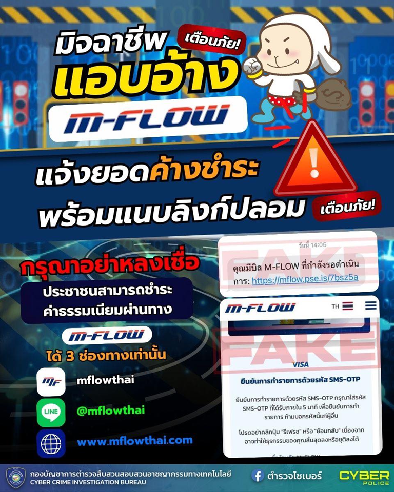 เตือนภัย กลับมาอีกแล้ว!!มิจฉาชีพแอบอ้าง M-Flow ปลอม . ส่ง SMS แจ้งยอดค้างชำระพร้อมแนบลิงก์ปลอม อย่า